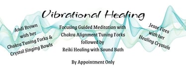 First is a guided meditation with Jesse to ground and focus you in the moment. During this, Andi will align your Chakras with her tuning forks.