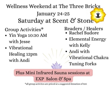 Andi Brown will be making vibrational magic with her crystal singing bowls, awakening and enlightening your whole self. I will be first energizing the entire room with healing energy, and then walking to each individual to offer specified energy healing to each of you.