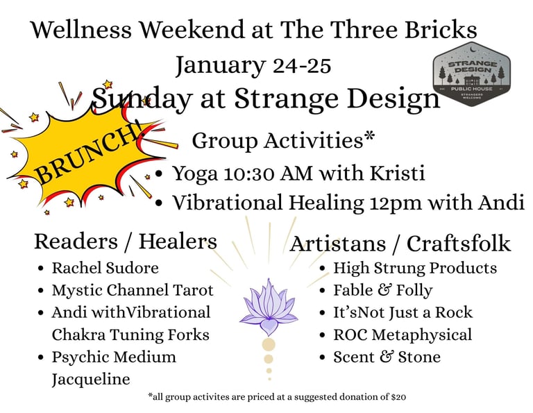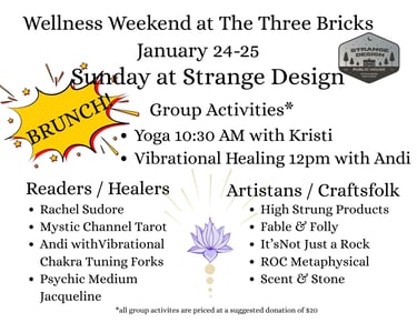 Prizes including but not limited to - jewelry, crystals, Strange Design merch and gift cards, Scent & Stone Merch and gift cards for tarot readings and reiki sessions