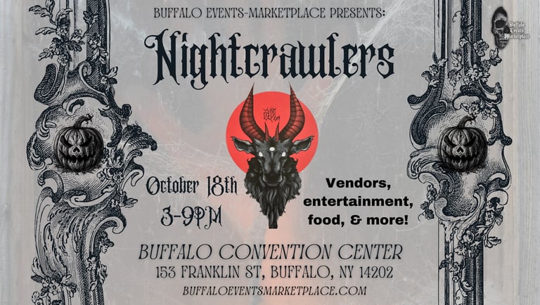 Get ready for a hauntingly good time! Buffalo Events Marketplace is thrilled to present Buffalo Nightcrawlers, a Halloween event like no other, blending eerie vibes, thrilling entertainment, and Halloween magic for an unforgettable night.