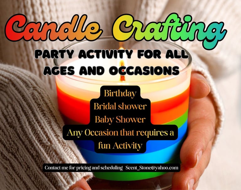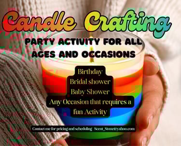 Looking for a fun activity to add to your party? Have everyone make a pretty candle with crystals in it! Planning a bridal shower? Everyone make a candle for the Bride! Having a kids birthday? Making your own candle is way more fun than party favors! Need "Gender Reveal" candles? We can do that!